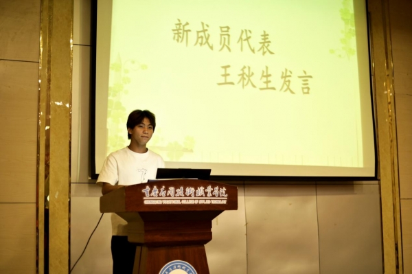 新生代表王秋生接着上台分享了自己加入心协的初衷与对未来工作的期待,表达了积极投入协会建设、服务广大同学的决心与热情。