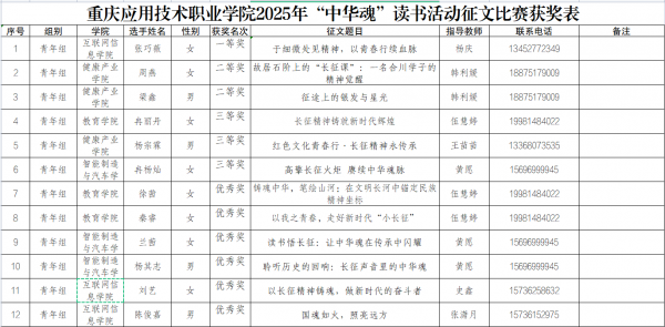 本次“中华魂”主题征文比赛为同学们搭建了学习红色文化、传承红色精神的平台,未来,学院将持续以“中华魂”读书活动为抓手,创新红色文化教育形式,引导更多青年学子在红色经典中汲取奋进力量,让长征精神在新时代青年中薪火相传、熠熠生辉。 (供稿人:王苗苗)